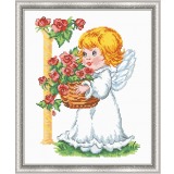 Набор для вышивания крестом "Ангелочек с корзиной роз"