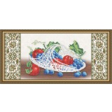 Рисунок на ткани "Хрусталь. Виноград и яблоки на бежевом"