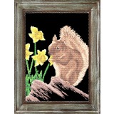 Рисунок на ткани для вышивания бисером "Белочка и нарциссы"