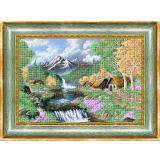 Рисунок на ткани для вышивания бисером "Деревенька в горах"