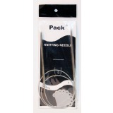 Общая длина этих круговых спиц, "от кончика до кончика 40-42 см. Собственно спица длиной 13-14 см, из нержавеющей стали. Для лёгкого скольжения пряжи по её поверхности, металл тщательно отполирован. Носик спицы качественно скруглён, хорошо проникает в вязание. Переход в месте соединения тросика и спицы гладкий и надёжный. Тросик диаметром около 1.8мм. в меру гибкий и упругий; пряжа по нему прекрасно скользит. Спицы комплектуются иглой для сшивания вязанных изделий.