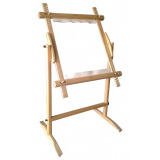 Станок изготовлен из древесины. Позволяют работать сидя в кресле или на стуле. Угол наклона и высоту рамки можно регулировать.