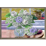 Рисунок на ткани для вышивания бисером "Белые тюльпаны"