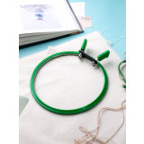 Внешняя часть пялец изготовлена из пластика, а внутренняя из твердого металла с хромированной пружиной. Стяжной хомут легко зажимает ткань. Пяльцы очень удобны и практичны в использовании.