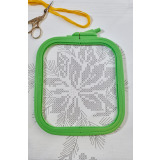 Внешняя часть пялец изготовлена из пластика, а внутренняя из твердого металла с хромированной пружиной. Стяжной хомут легко зажимает ткань. Пяльцы очень удобны и практичны в использовании.