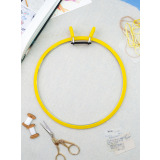 Внешняя часть пялец изготовлена из пластика, а внутренняя из твердого металла с хромированной пружиной. Стяжной хомут легко зажимает ткань. Пяльцы очень удобны и практичны в использовании.