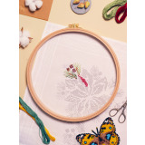 В состав набора входит все необходимое для работы: Тонированная перфорированная основа из фанеры 3 мм. Бисер 4 цветов Preciosa. Белый фетр для обработки изнаночной стороны (толщина 1 мм). Атласная лента. Бумажная двухцветная символьная схема. Игла.