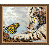 Картина стразами "Котенок и бабочка"