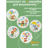 В набор входит: - инструкция; - хлопковое полотно с нанесенным рисунком; - нити Мулине; - пяльцы пластиковые диаметром 20 см -1 шт; - 2 иглы. При нагревании рисунок исчезает. Нельзя гладить перед вышиванием. Рисунок можно смыть мыльной водой по окончании вышивания.