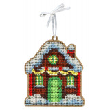 Набор для вышивания бисером на деревянной основе "Ёлочная игрушка. Уютный домик"