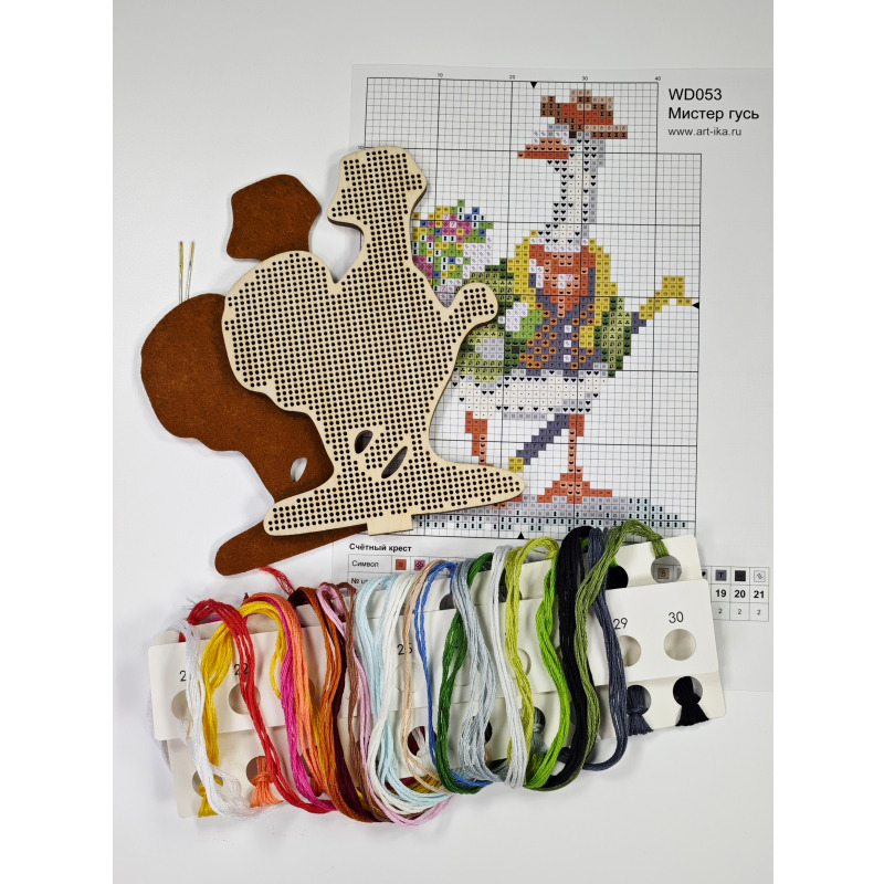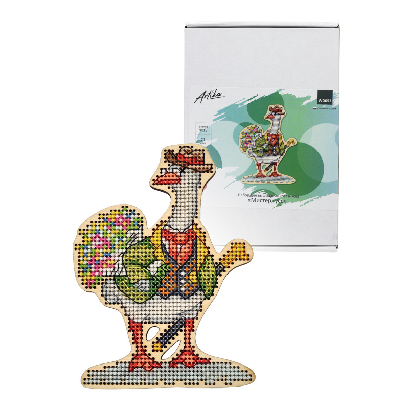 Набор для вышивания крестиком на деревянной основе от бренда «Артика». Размер готовой работы 9х13 см. Мулине Luca-S - 21 цвет. Также в комплекте: печатная цветная символьная схема и схема Saga, две иглы для вышивания, фетр.