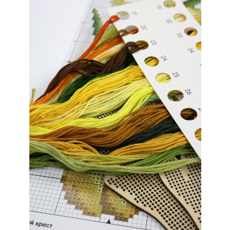 Набор для вышивания крестиком на деревянной основе от бренда «Артика». Комплект три штуки: 9х19, 8х20, 7х18 см. Мулине Luca-S - 23 цвета. Также в комплекте: печатная цветная символьная схема и схема Saga, две иглы для вышивания, фетр.