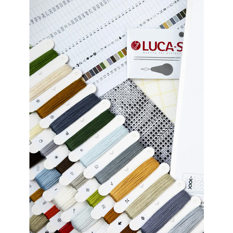 Размер: 32 × 48 см Количество крестиков: 200 × 300 Цветов: 55 Нитки: Luca-S, 100% хлопок Канва: Zweigart Aida 16 ct, 3543 клетчатая, 46 × 62 см Иглы для вышивания №26 – 2 шт., 1 нитевдеватель (в комплекте) Схема: черно-белая, 9 листов формата A3 Уровень сложности: 3/5