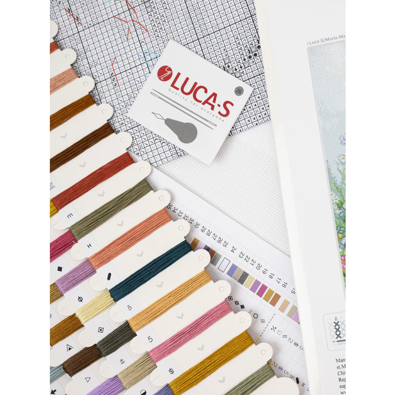 Размер: 33 × 30 см Количество крестиков: 207 × 190 Цветов: 56 Нитки: Luca-S, 100% хлопок Канва: Zweigart Aida 16 ct (100/101), 47 × 44 см Иглы для вышивания №26 – 2 шт. Схема: частично цветная с цветным контуром, 6 листов формата A3 Уровень сложности: 3/5