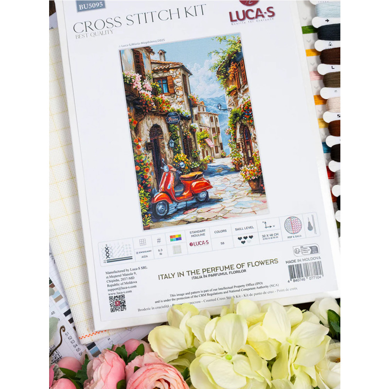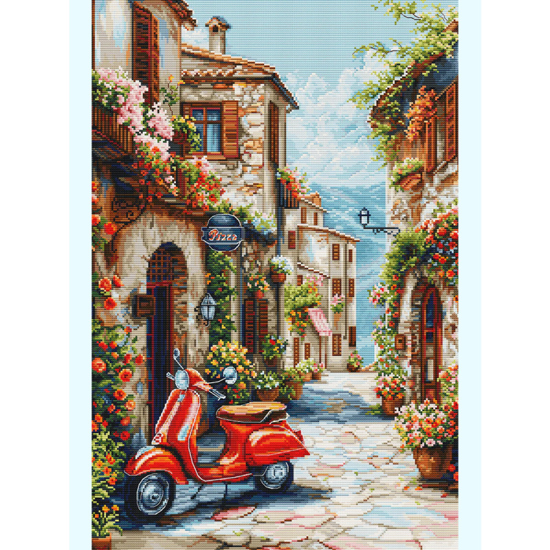Размер: 32 × 48 см Количество крестиков: 200 × 300 Цветов: 58 Нитки: Luca-S, 100% хлопок Канва: Zweigart Aida 16 ct (3543), 46 × 62 см Иглы для вышивания №26 – 2 шт. Схема: частично цветная с цветным контуром, 9 листов формата A3 Уровень сложности: 4/5