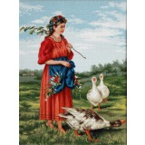 Набор для вышивания крестом "Девочка с гусями"