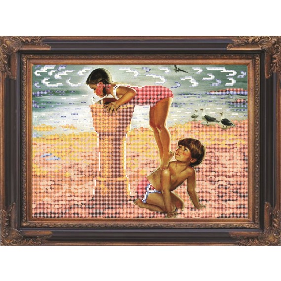 Рисунок на ткани для вышивания бисером "Ребятишки на пляжу"