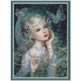Набор для вышивания крестом "Девушка дразнящая голубей"