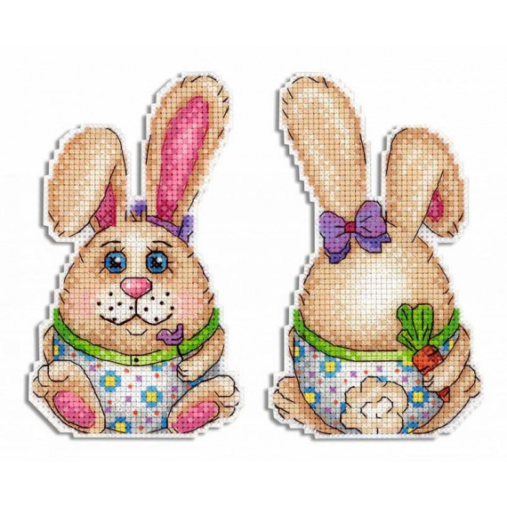 Обе стороны зайки вышиваются согласно схеме, затем вырезаются по контуру, обозначенному в руководстве по вышиванию, и сшиваются изнаночными сторонами внутрь.