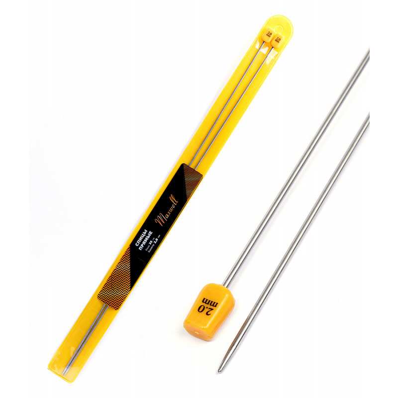Спицы длиной 35 см из нержавеющей стали. Для лёгкого скольжения пряжи по её поверхности, металл тщательно отполирован. Носик спицы качественно скруглён, хорошо проникает в вязание. На конце каждой из спиц - яркий пластиковый ограничитель с обозначением размера.