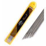 Спицы длиной 35 см из нержавеющей стали. Для лёгкого скольжения пряжи по её поверхности, металл тщательно отполирован. Носик спицы качественно скруглён, хорошо проникает в вязание. На конце каждой из спиц - яркий пластиковый ограничитель с обозначением размера.