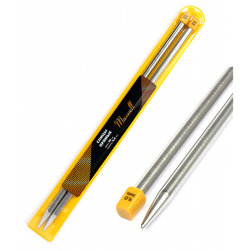 Спицы длиной 35 см из нержавеющей стали. Для лёгкого скольжения пряжи по её поверхности, металл тщательно отполирован. Носик спицы качественно скруглён, хорошо проникает в вязание. На конце каждой из спиц - яркий пластиковый ограничитель с обозначением размера.