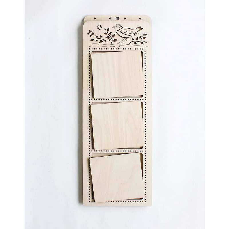 1. Подберите вышивку для оформления. Ткань, на которой выполнена работа, должна быть равна размеру рамы или быть больше нее. 2. Наложите деталь С на вышивку так, чтобы она органично вписалась в окно рамы. Простым карандашом обведите по внешнему контуру деталь С. 3. Обрежьте края вышивки по получившейся линии. 4. Положите деталь В по центру детали А. Поместите вышивку поверх обеих деталей и убедитесь, что края работы не выходят за края детали А. 5. Затем поместите деталь С на вышивку, плотно прижав, так, чтобы деталь В расположилась в окне детали С. Убедитесь в правильном расположении отверстий деталей А и С, они должны совпасть. 6. Зафиксируйте детали рамки зажимами — по одному на каждую сторону. Во избежание повреждений рамы проложите кусочки мягкой ткани между зажимом и рамой. 7. Сшейте детали А и С через отверстия. Цвета, толщину ниток и вид стежка определите самостоятельно в зависимости от вашей идеи оформления. Нить можно закрепить с задней стороны детали А в одном из отверстий.
