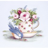 Набор для вышивания крестом "Птичка и чашка чая"