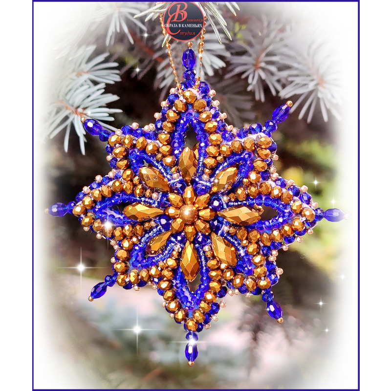 Состав набора: Фетр с нанесенной авторской схемой, бусины “Хрусталь”, бисер (Чехия), металлические шарики, металлические штифты, цепочка, игла, картон, 2-х сторонний скотч, схема расположения бусин, инструкция.