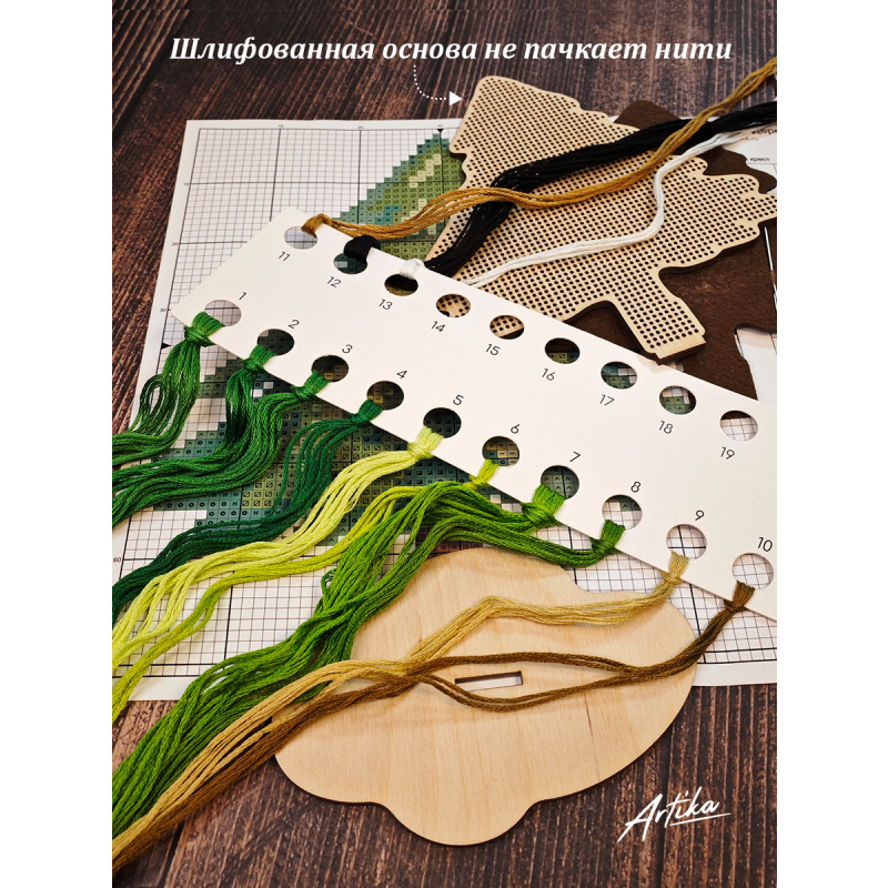 В наборе есть все необходимое: деревянная основа, палетка с высококачественным мулине luca-s, цветная символьная схема, фетр для оформления задней стороны вышивки, деревянная подставка. На печатаной схеме есть QR код, наведя камеру мобильного устройства на который, вы сможете скачать схему для программы Cross Stitch saga. Вышивайте с удовольствием!