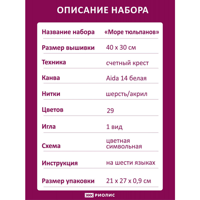 В наборе используются техники: крест, стежок, смешанные цвета.