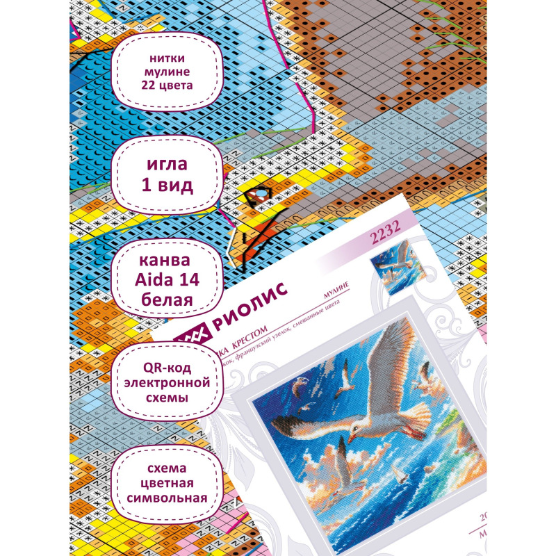 В наборе используются техники: крест, стежок, французский узелок, смешанные цвета.
