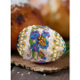В наборе используются техники: крест, стежок, бисер. В набор также входит: деревянная основа 6 х 4,5 см, металлизированная нить. Дополнительно требуется: капроновая нить.