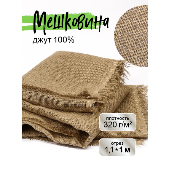 Мешковина, на первый взгляд не самый приятный материал, грубовата с виду, жестковата на ощупь, часто воспринимается нами как некий деревенский, сельский атрибут. Но что если творчески подойти к этому вопросу. Мешковина отлично сочетается с другими натуральными тканями, а её естественный цвет легко вписывается и дополняет эко интерьеры и не только. Мешковину активно используют в украшениях для свадеб. Нужна эко сумка для покупок? Скорее берись за работу, а в качестве материала пойдёт все та же мешковина. Мешковина обладает массой преимуществ: доступность, крепость, дешевизна, универсальности, износостойкость, долговечность, экологичность, простота в использовании. Мешковина – прочный материал, изготовленный из натуральных волокон джута и льна. Не требует специального ухода, способен сохранять свою целостность под воздействием агрессивной среды. Ткань золотисто – коричневого цвета, плохо намокает, не подвержена гниению, жароустойчива. Материал широко применяется в декоре, интерьере, а также в качестве упаковочного материала (из мешковины делают шторы, скатерти, чехлы для мебели, оформляют интерьеры художественных студий и театров . В декоративном искусстве – для создания кукол и других поделок. Длина отреза: 1 метр, ширина: 110 см. Плотность 320г/м2.Плотность плетения 46×54.