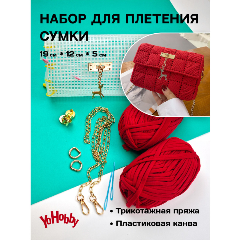 Создание сумки на пластиковой канве – это увлекательный творческий процесс, позволяющий сделать уникальный и практичный аксессуар. Для этого вам понадобится пластиковая канва, нитки или шнур, и немного терпения. В комплекте нашего набора уже есть все необходимое для этого увлекательного процесса. Состав набора: Канва пластиковая размер ячейки -4 мм. Два мотка трикотажной пряжи ленты (вес мотка 100 гр,состав спандекс/полиэстер) Цепочка,подвес,D-кольца -2шт.,магнитные кнопки- 2шт.,иглы-2шт. Размер готовой сумочки примерно 19х12х5 см.