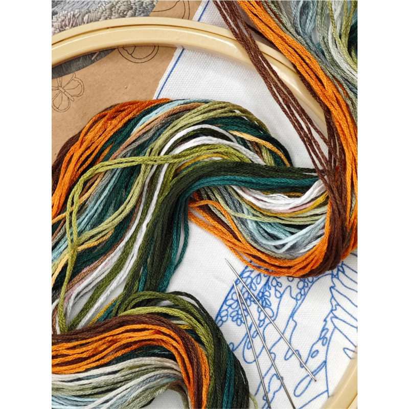 Набор для вышивания гладью "Осень в горах" от бренда YoHobby. Размер готовой работы 15 см. В набор входит качественное мулине 22 цвета, ткань с нанесенным рисунком, три иглы для вышивания, пяльцы с винтом и подробная инструкция с картинками. Каждая нить мулине на палетке состоит из 6 нитей: если по инструкции элемент вышивается в 2 нити - то берем одну и складываем пополам, если по инструкции в 4 нити - то это две нити с палетки, также сложенные пополам. Вышивка выполняется от центра к краю, также обращайте внимание на перекрывающиеся элементы. Готовый результат может слегка отличаться от печатного фото работы, которая приведена для примера и понимания схемы. Обратите, пожалуйста, внимание! Рисунок на ткани выполнен смываемыми чернилами, поэтому гладить и мочить до вышивки ткань не следует во избежание порчи разметки.