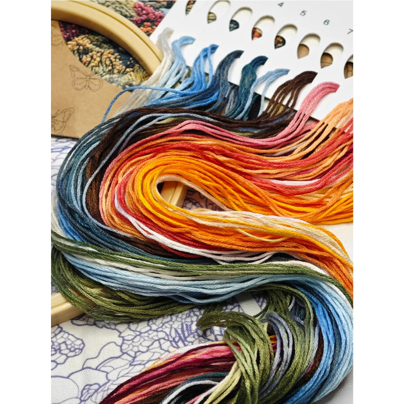 Набор для вышивания гладью "Осень" от бренда YoHobby. Размер готовой работы 15 см. В набор входит качественное мулине 27 цветов, ткань с нанесенным рисунком, три иглы для вышивания, пяльцы с винтом и подробная инструкция с картинками. Каждая нить мулине на палетке состоит из 6 нитей: если по инструкции элемент вышивается в 2 нити - то берем одну и складываем пополам, если по инструкции в 4 нити - то это две нити с палетки, также сложенные пополам. Вышивка выполняется от центра к краю, также обращайте внимание на перекрывающиеся элементы. Готовый результат может слегка отличаться от печатного фото работы, которая приведена для примера и понимания схемы. Обратите, пожалуйста, внимание! Рисунок на ткани выполнен смываемыми чернилами, поэтому гладить и мочить до вышивки ткань не следует во избежание порчи разметки.
