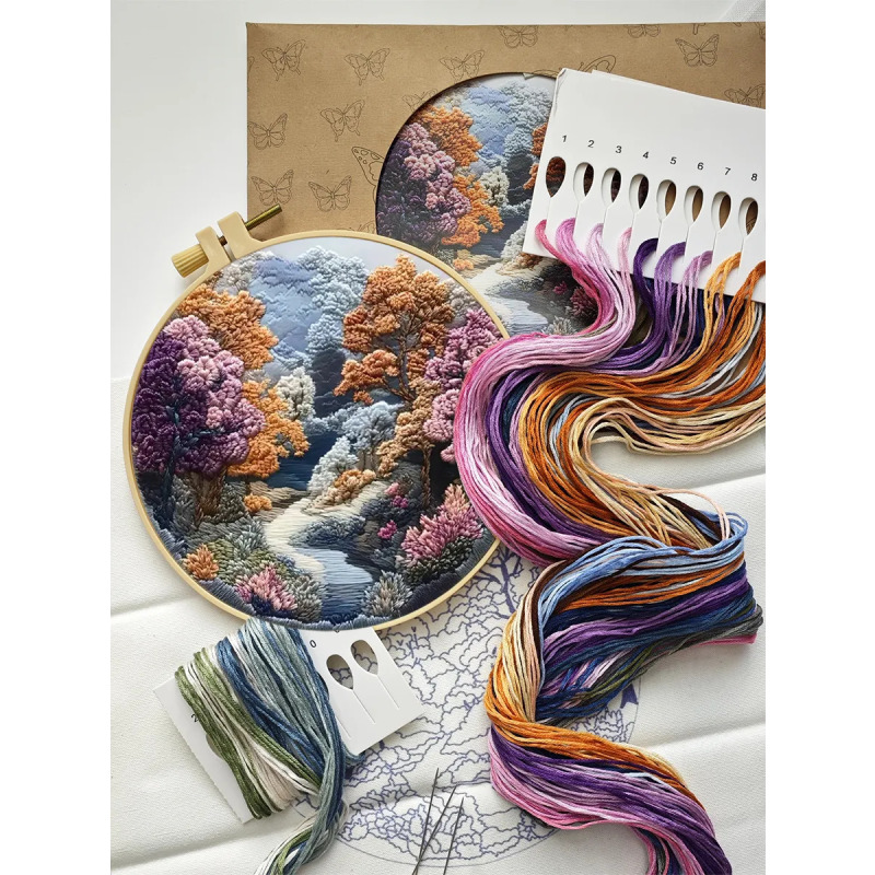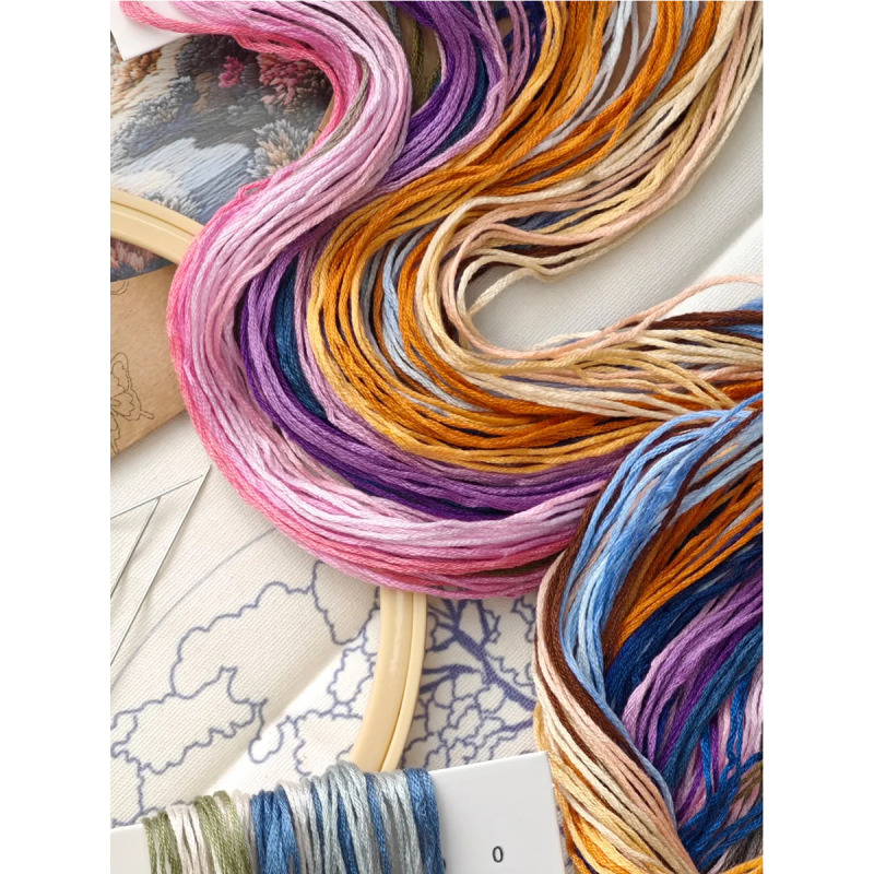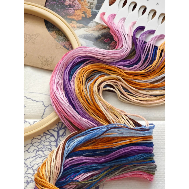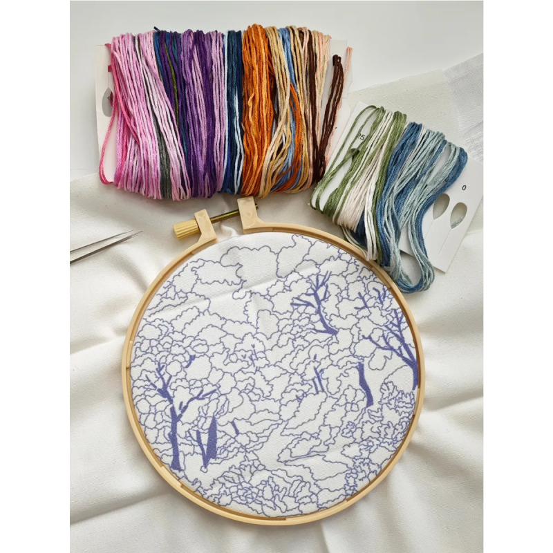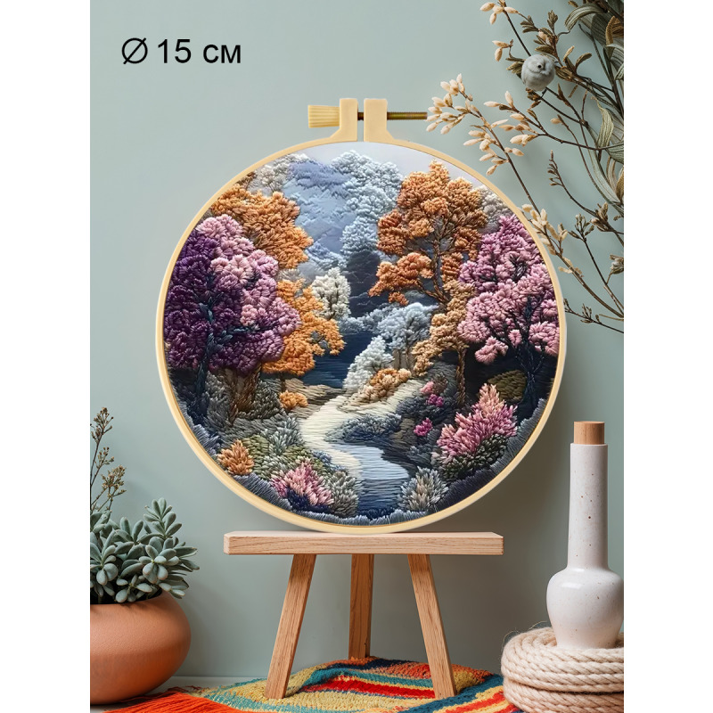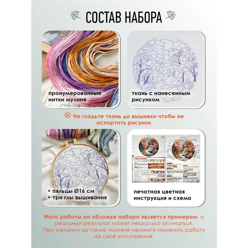 Набор для вышивания гладью "Весеннее цветение" от бренда YoHobby. Размер готовой работы 15 см. В набор входит качественное мулине 28 цветов, ткань с нанесенным рисунком, три иглы для вышивания, пяльцы с винтом и подробная инструкция с картинками. Каждая нить мулине на палетке состоит из 6 нитей: если по инструкции элемент вышивается в 2 нити - то берем одну и складываем пополам, если по инструкции в 4 нити - то это две нити с палетки, также сложенные пополам. Вышивка выполняется от центра к краю, также обращайте внимание на перекрывающиеся элементы. Готовый результат может слегка отличаться от печатного фото работы, которая приведена для примера и понимания схемы. Обратите, пожалуйста, внимание! Рисунок на ткани выполнен смываемыми чернилами, поэтому гладить и мочить до вышивки ткань не следует во избежание порчи разметки.