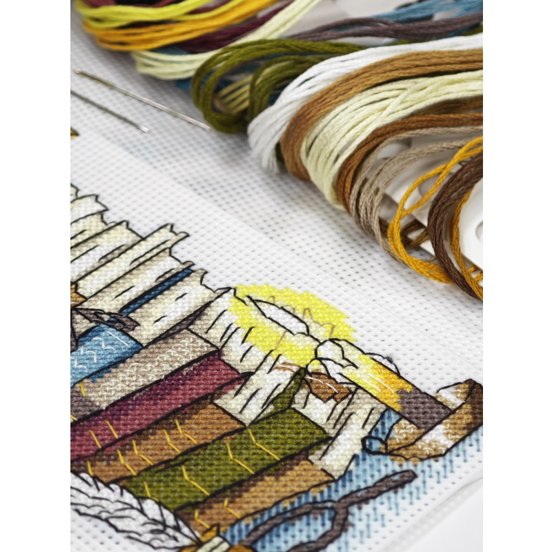 Набор для вышивания крестиком на канве от бренда «Артика». Размер готовой работы 7,5х17 см. Мулине Luca-S - 23 цвета. Канва пластиковая белая. Также в комплекте: печатная цветная символьная схема и схема Saga, две иглы для вышивания.