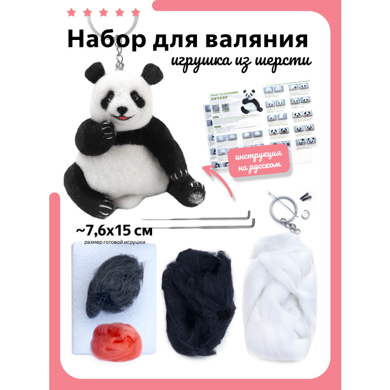 Набор для валяния, в котором собрано всё необходимое для создания красивой игрушки своими руками в технике сухого валяния. Не нужно искать шерсть разных цветов, всё необходимое есть в комплекте для творчества. Данный комплект для валяния позволит даже начинающему любителю фелтинга быстро смастерить поделку. Творческий набор для валяния – это игрушка, которую можно создать своими руками. Набор для валяния из шерсти, который позволяет детям проявить свою творческую мысль и создать уникальную поделку. Набор включает в себя все необходимые материалы для валяния игрушки. Наши наборы для валяния из шерсти подходят как для начинающих, так и для опытных рукодельников. Они развивают мелкую моторику, творческое мышление и предлагают уникальный опыт самостоятельного создания поделки. Будьте уверены, что с нашими наборами для создания вы сможете реализовать любые идеи и создать прекрасные поделки валяния из шерсти. Они станут не только отличной развлекательной игрушкой, но и возможностью развивать творческие навыки и фантазию у ваших детей. Комплектация Цветная экошерсть, Иглы для валяния, Глазки, Поролон, Крепление для брелка, Инструкция.