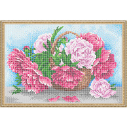 Рисунок на ткани для вышивания бисером "Пионы в корзине"